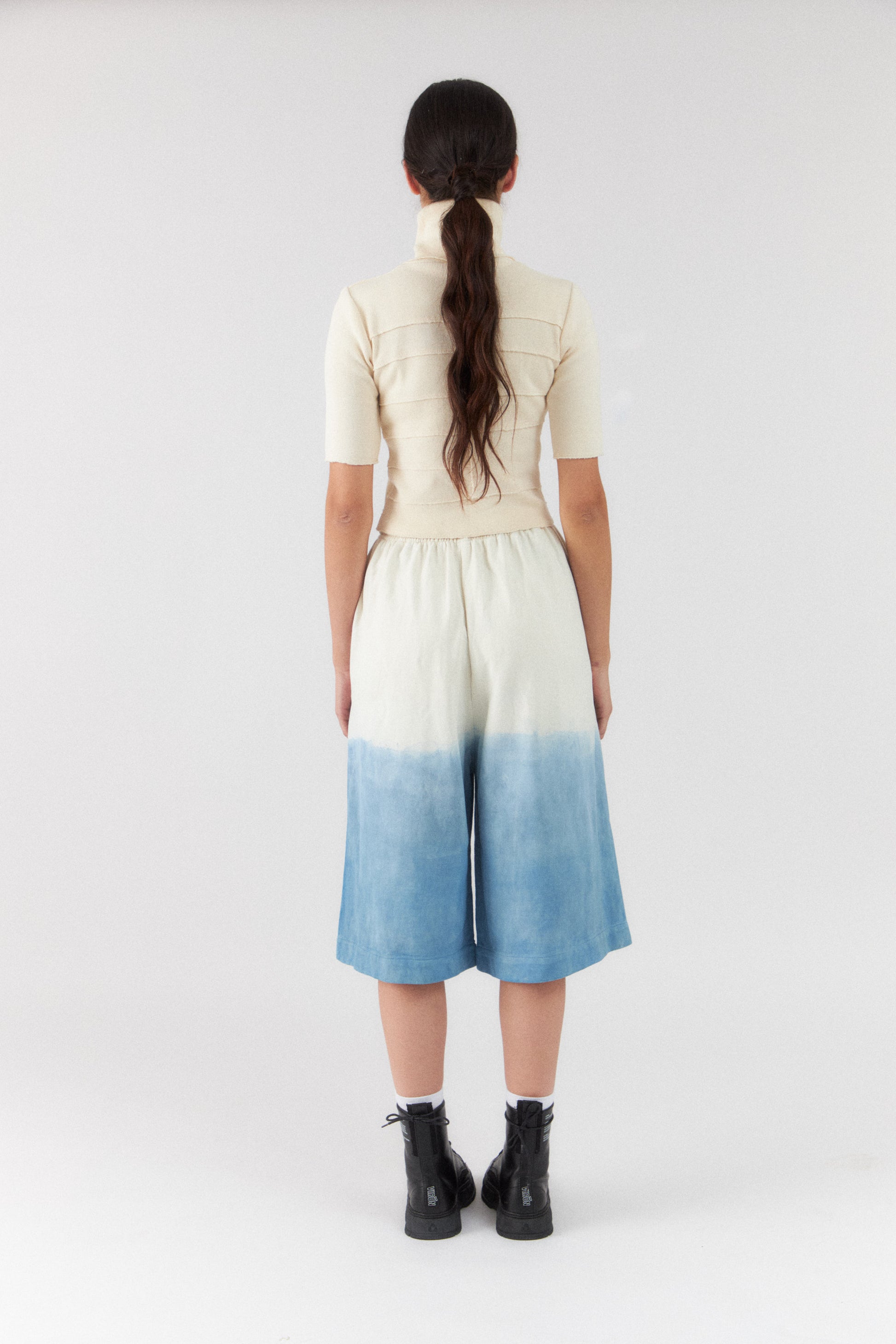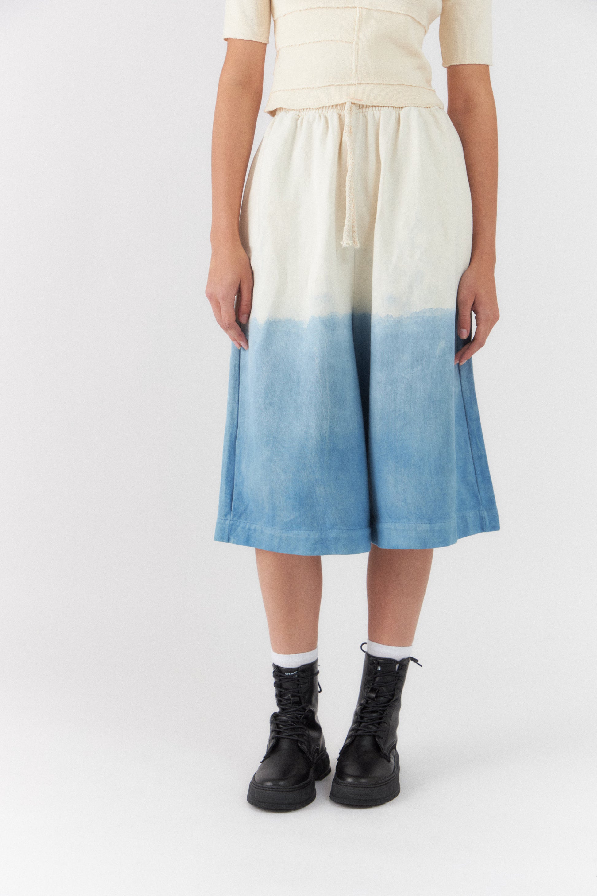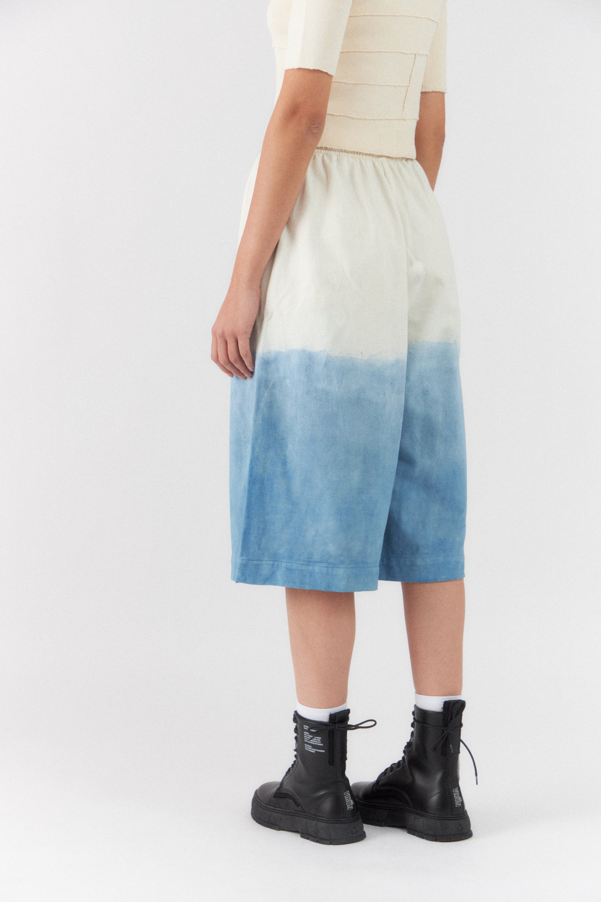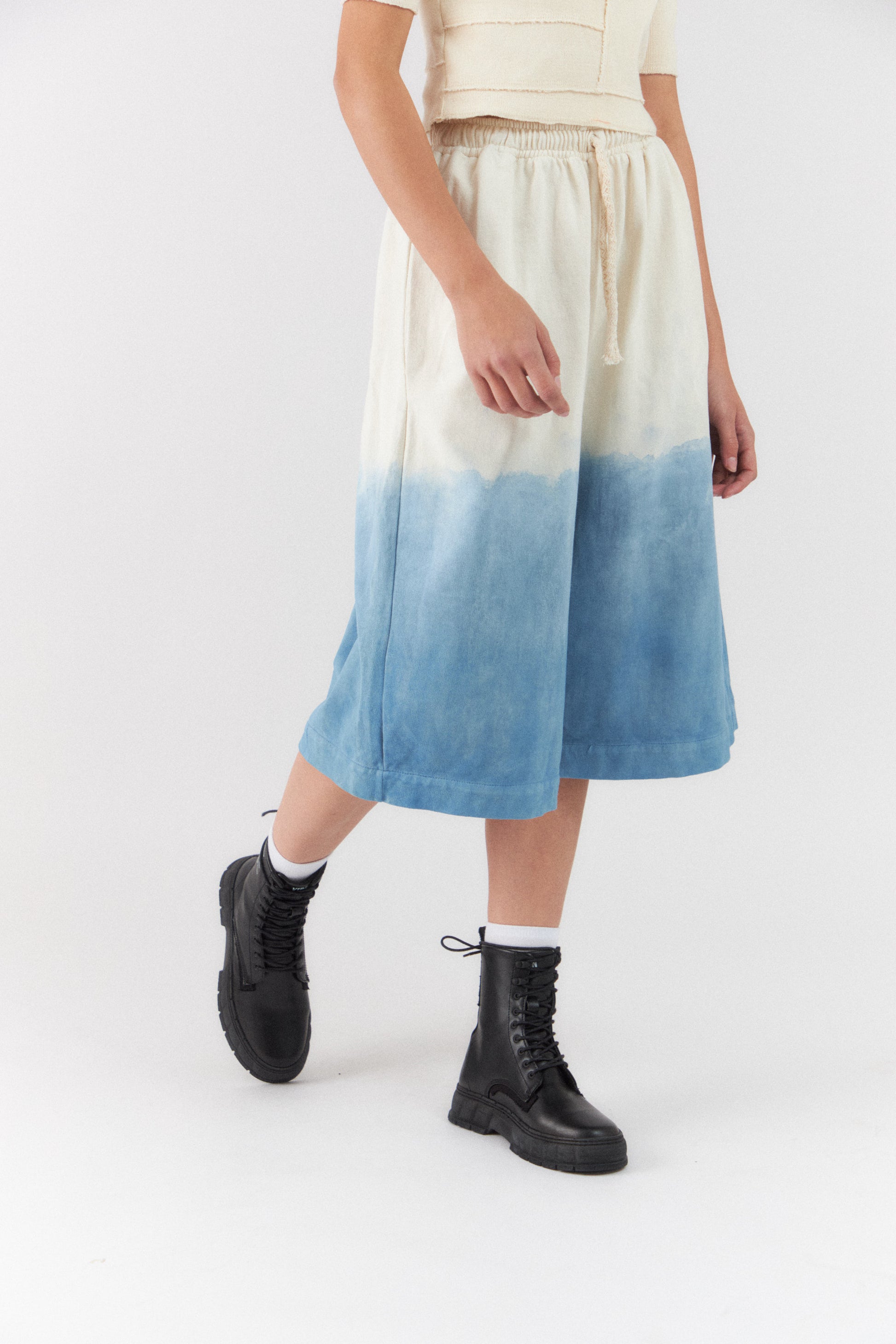 Pantalón a la pantorrilla con cintura elastizada y calce cómodo. Teñido de forma artesanal resultando en una pieza única. Confeccionado en Uruguay.