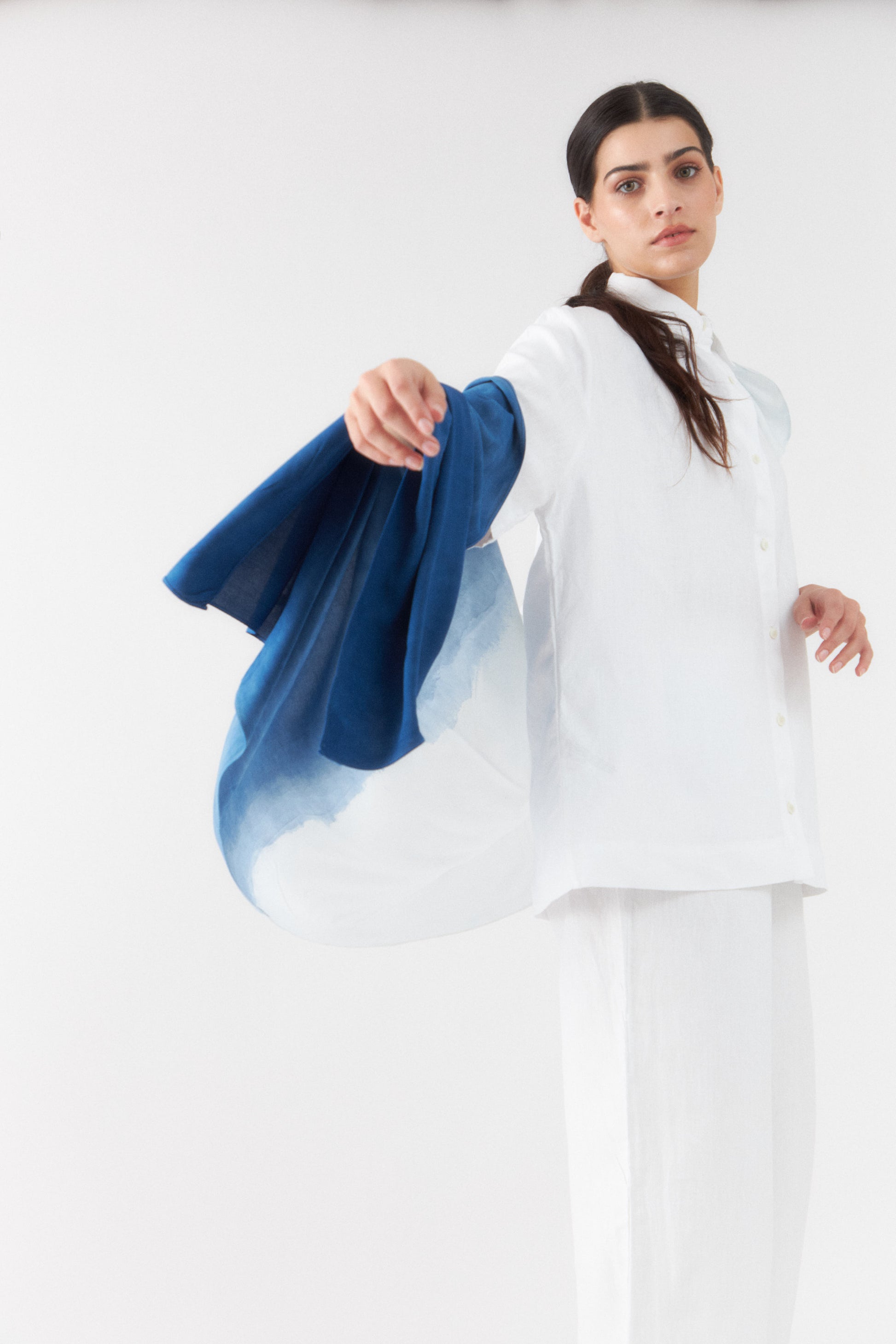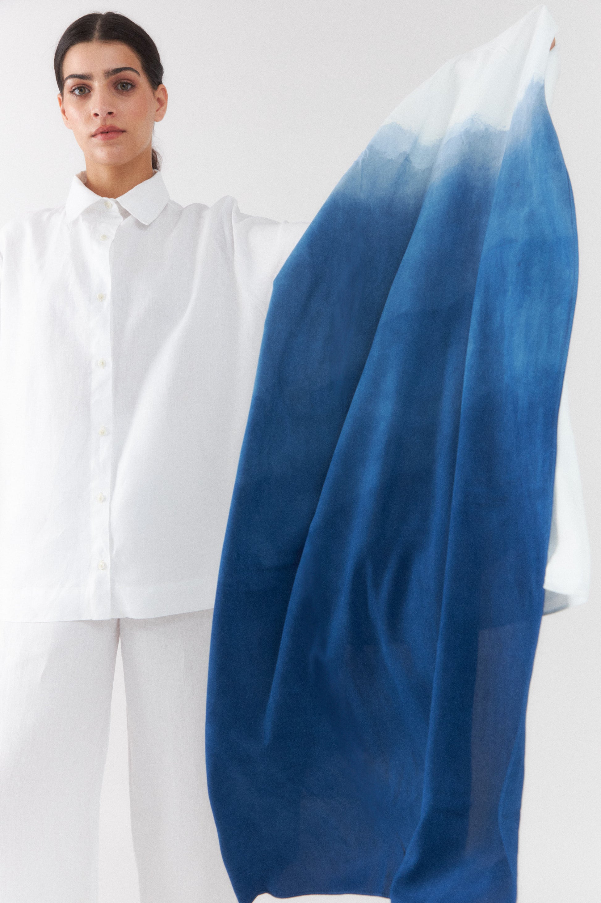 Pañuelo liviano 200 x 80 cm. Teñido de forma artesanal resultando en una pieza única. Confeccionado en Uruguay.